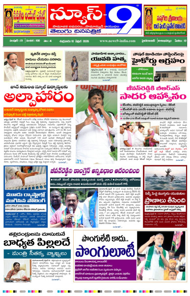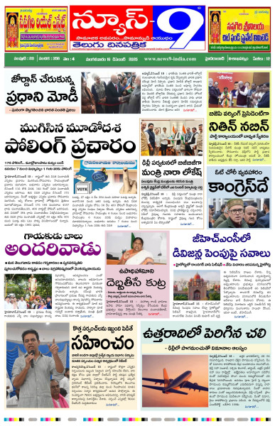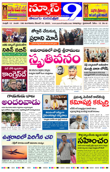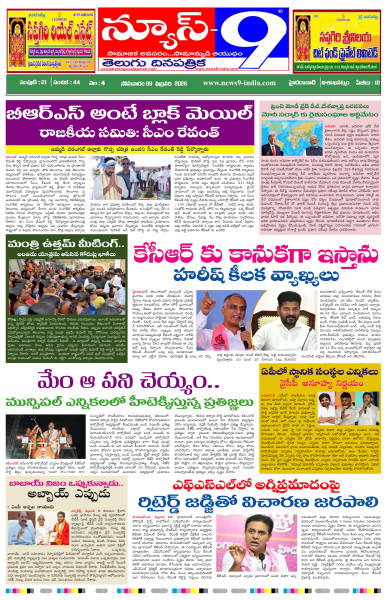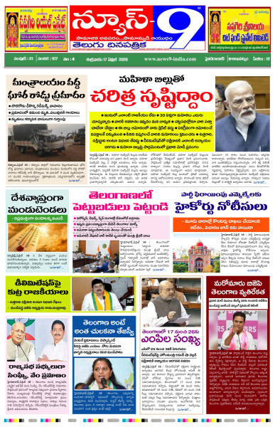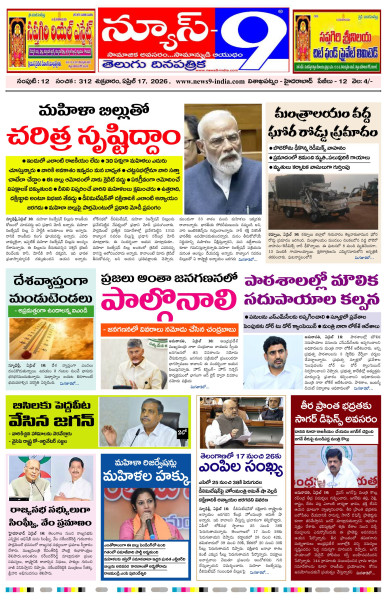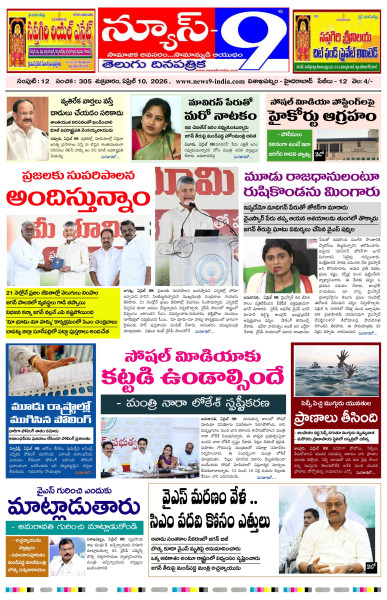 వక్రీకరణకు దూరంగా.. వాస్తవాలకు దర్పణం పడుతూ.. నిజాలను నిర్భయంగా ఎలుగెత్తి చాటుతాం... ప్రతి అక్షరం ఆయుధంగా మలచి.. ప్రజాపక్షాన పోరాడుతాం... అవినీతిపై కలాలను కవాతు చేయిస్తాం.. నిస్సిగ్గుగా వ్యవహరించే పాలకులను.. నిగ్గదీసి అడిగేందుకు.. మీ న్యూస్ 9 తెలుగు దిన పత్రిక.